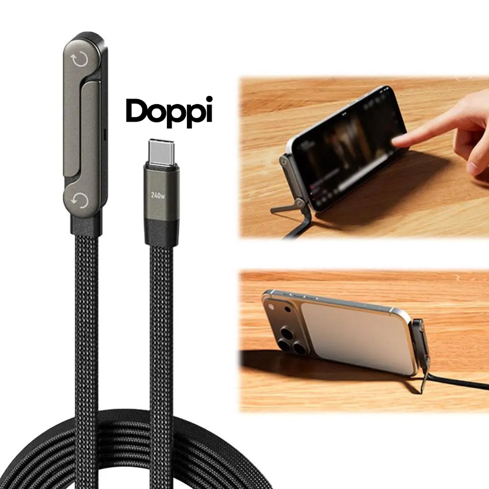 Med vår kabel kan du både ladda supersnabbt och ställa mobilen i perfekt vinkel utan att kabeln är i vägen.